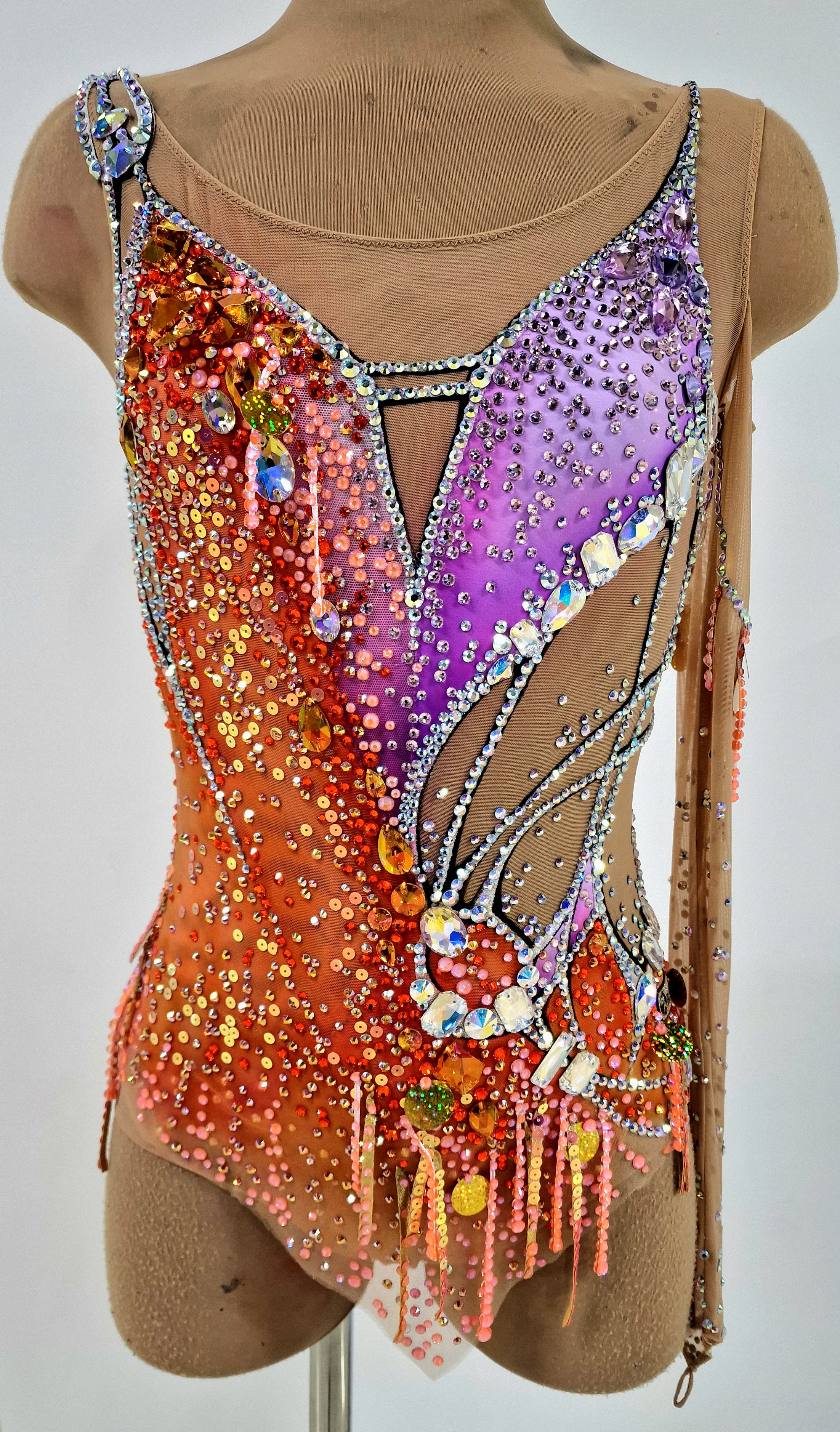 . size 38, chest 74-78cm, arc 132-136cm.5,470 adhesive and 69 large sewn rhinestones were Pre-owned on the leotard.