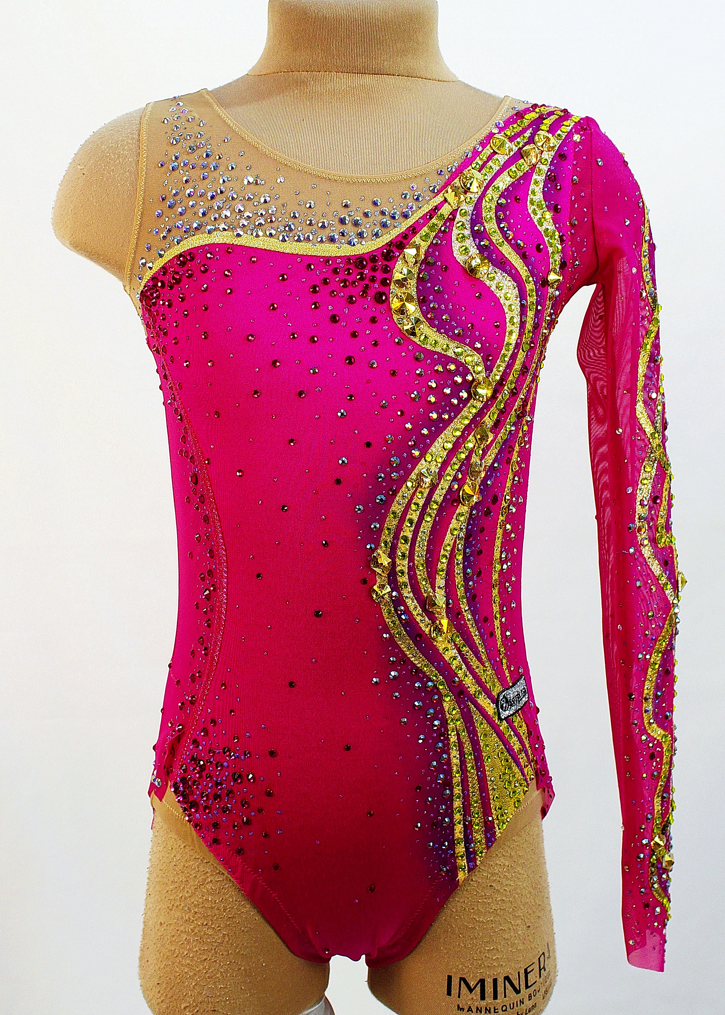 1,625 adhesive and 30 large sewn rhinestones were Pre-owned on the leotard.
