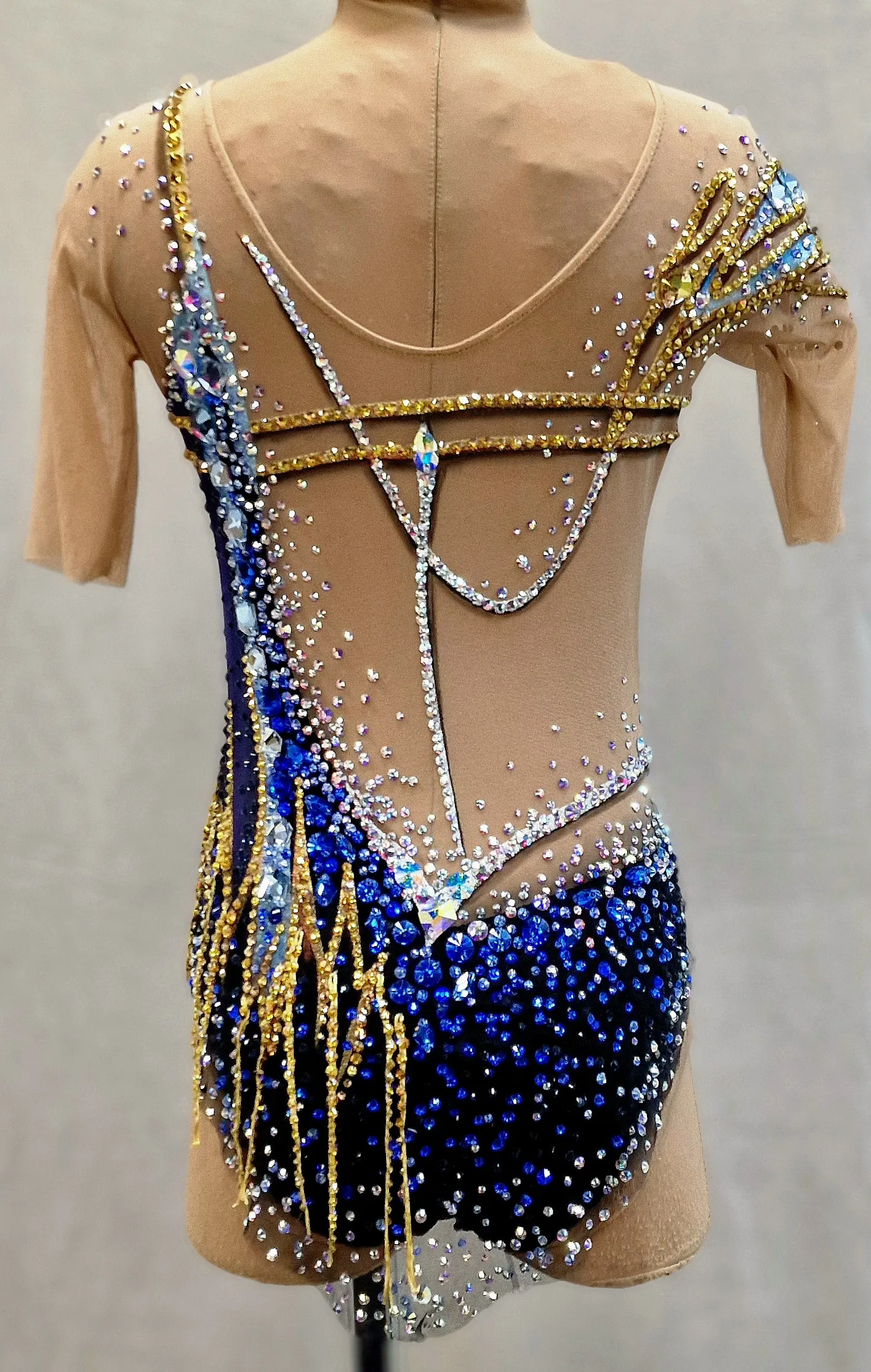 34 размер, обхват груди 66-70 см, дуга122-126см.На купальнике использовано 4740 клеевых и 114 крупных пришивных страз.